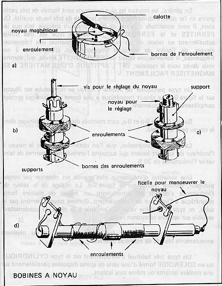 Sur les (figures b et c), sont montrés deux autres bobinages dont le noyau peut être réglé. La variation qu’on obtient en vissant le noyau à l’intérieur du support isolant, permet de faire varier l’inductance de 20%.