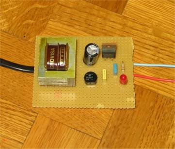La résistance de 220 ou 370 ohms et la led rouge facultatif (je me suis fait plaisir à mettre un témoin de tension)