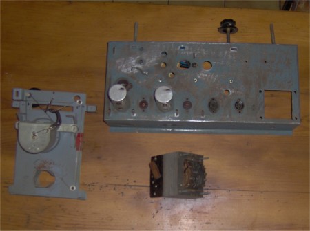 - Cette radio n’est pas équipée d’un œil magique. Par contre il y a l’emplacement sur le verre du cadre et le support du tube à l’intérieur. J’ai bien envie de lui en mettre un car je n’aime pas cet emplacement vide sur la façade. (Peut être y avait-il plusieurs prix ou plusieurs qualités sur le type 49 car son frère à un oeil magique d’origine)