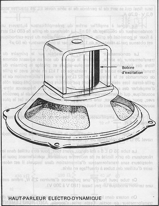 Il est toutefois possible de trouver sur certains vieux récepteurs qui fonctionnent encore, des haut parleurs électrodynamiques dans lesquels le champ magnétique pour la bobine mobile est crée par un enroulement spécial (appelé BOBINE DE CHAMP OU D’ EXCITATION du haut parleur) dans lequel on fait passer un courant continu d’excitation (qui est en général le courant anodique)