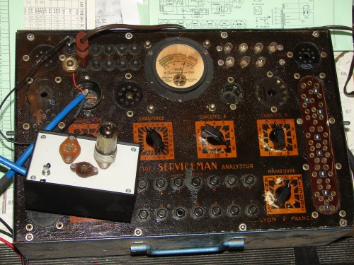 Teste de tous les tubes au lampemètre. Comme se dernier date des années 40, il est impossible de testé des tubes des années 50 sans faire un petit montage