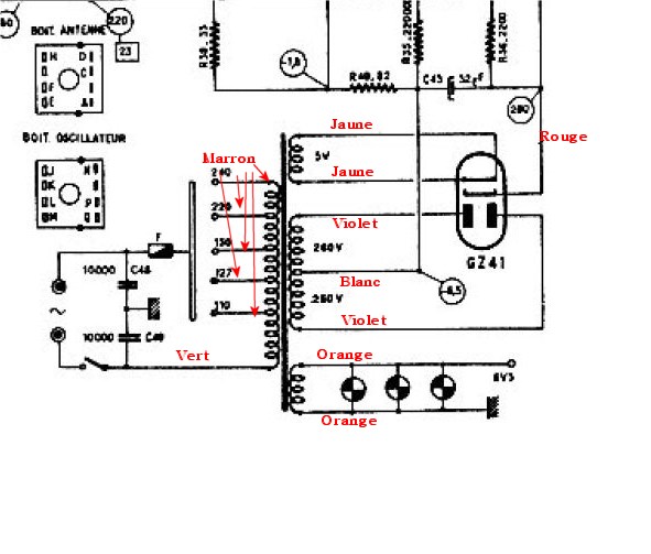 J’ai trouvé un schéma mais il y a quelques variantes au niveau des tubes, sans doute une panne ou le technicien a mis des tubes plus ou moins équivalents.
