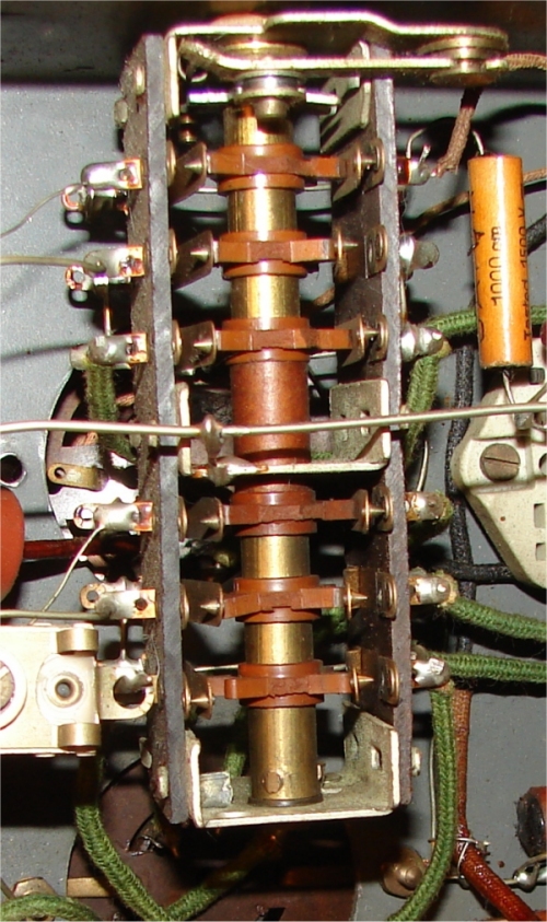 Donc j’ai dessiné le schéma de principe. Par contre je ne garantis pas l’exactitude de la partie encadrée en vert. Entre les différentes selfs, et les différents contacts du sélecteur de fréquences, je perd un peu mon latin, se qui ne gène en rien sur le principe de fonctionnement et de restauration.