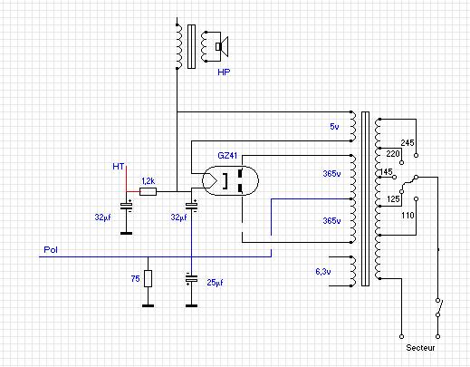 Si les 3 condos tubes aluminium, sont d’origine, leurs valeur est de 15µf, me semble un peu faible, et cela devait engendrer un léger ronflement de fond. La valve GZ41, supporte sans problème une valeur de 50µf. j’ai donc dans un premier temps, remplacé ses trois condo par des 15µf comme à l’origine. Une ronflette est bien présente, bien entendu très désagréable. Donc j’ai remplacé en amont et en aval de la résistance de filtrage par des 47µf ce qui a résolu le problème.