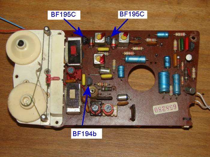 Transistors:BF194 - BF195 - BF195 - BC148 - AC132 - AC127 |