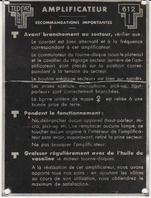 Ce modèle 612 est assez rare. Il y a que 3 modèles répertoriés, dont 1 ou la platine 78 trs a été remplacé par un modèle plus récent.
