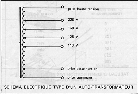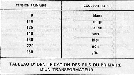 Pour le transfo dont les extrémités sortent de gaines ou de tubes isolants, c’est la couleur des fils eux-mêmes qui détermine la valeur de la tension.