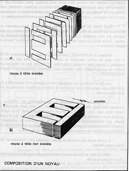 Comme la fréquence est basse, il est nécessaire, d’avoir un noyau de dimensions appréciables sans entre fer, forme par des tôles en fer silicium.