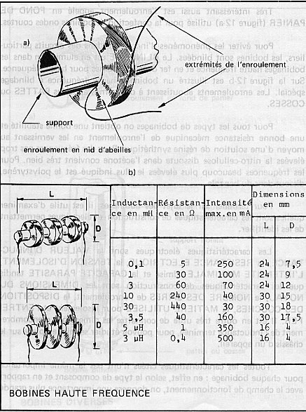 Sur (la figure b) sont indiquées les dimensions et les caractéristiques principales des types de bobinages HF.