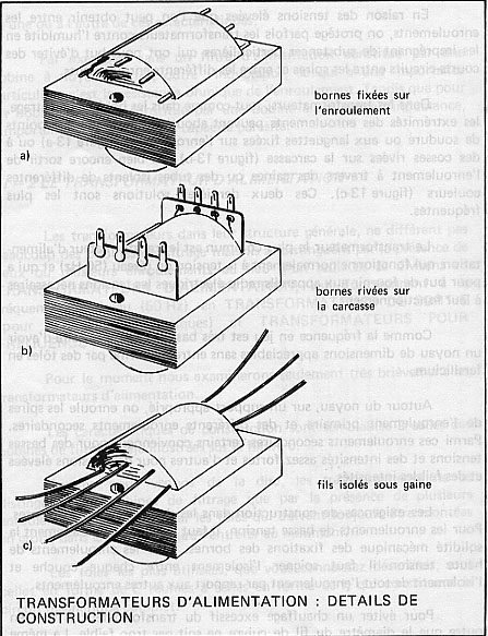 Dans les transformateurs, tout comme les bobines de filtrage, les extrémités des enroulements peuvent aboutir directement aux points de soudure ou aux languettes fixées sur l’enroulement (figure a)