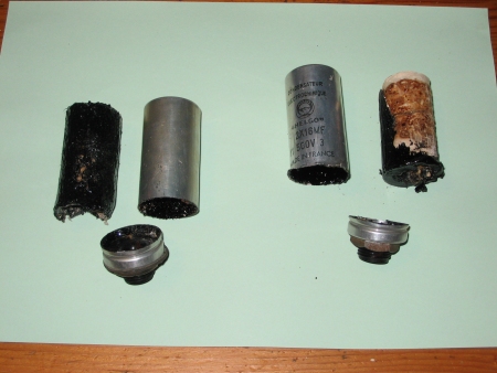 | Mon petit montage a fonctionné pendant plus d’une heure, en faisant différents relevés de température du transfo, aussi les tensions du 5 et 6,3v. Au bout d’une heure RAS, donc il ne me reste plus qu’à incérer ce montage dans la TSF. J’ai changé la douille du tube AZ41 car un connecteur était cassé. Changement des condos électrochimiques. A l’origine il y avait 2 condos de 2x15µf en parallèles, ce qui représente 4 condensateurs. Je n’aime pas trop faire ce genre de montage, alors j’ai incéré, 1 condo de 22µf sortie du transfo, et un condo de 47µf 400v sortie de la self, ce qui donne le même résultat. |
